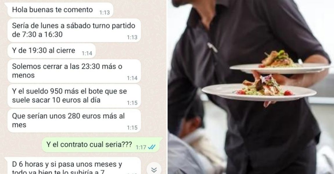 La popular cuenta de Twitter @SoyCamarero, dedicada a recopilar y difundir contenidos polémicos relacionados con el sector hostelero, ha compartido la conversación en Whatsapp entre un camarero que se informaba sobre la oferta de trabajo de un establecimiento con el responsable del mismo.