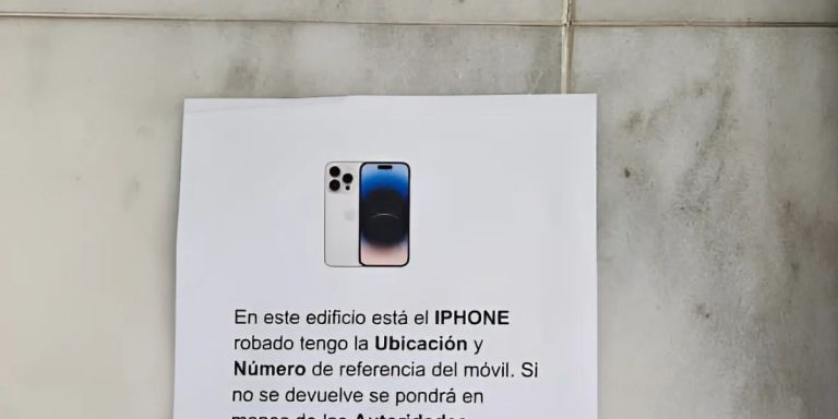 Un iPhone robado provoca tensión en un edificio: el dueño lanza ultimátum con cartel Una nota impresa colocada en un muro de mármol ha desatado una ola de atención y rumores entre los residentes de un edificio. El cartel, sencillo pero directo, anuncia que en ese mismo inmueble se encuentra un iPhone robado, y su … Sigue leyendo Localiza su iPhone robado en un edificio y la nota que deja en el portal es historia de España