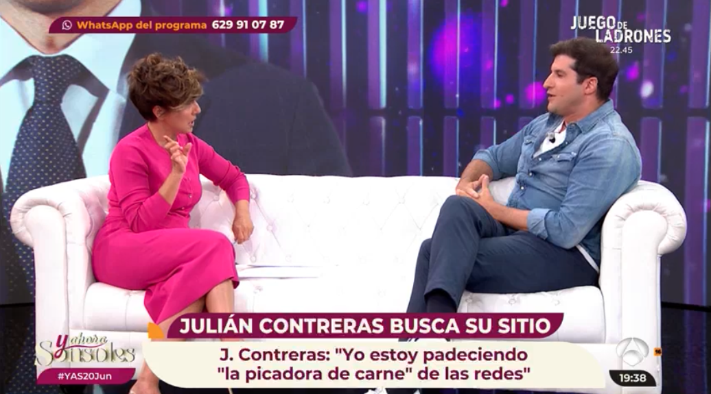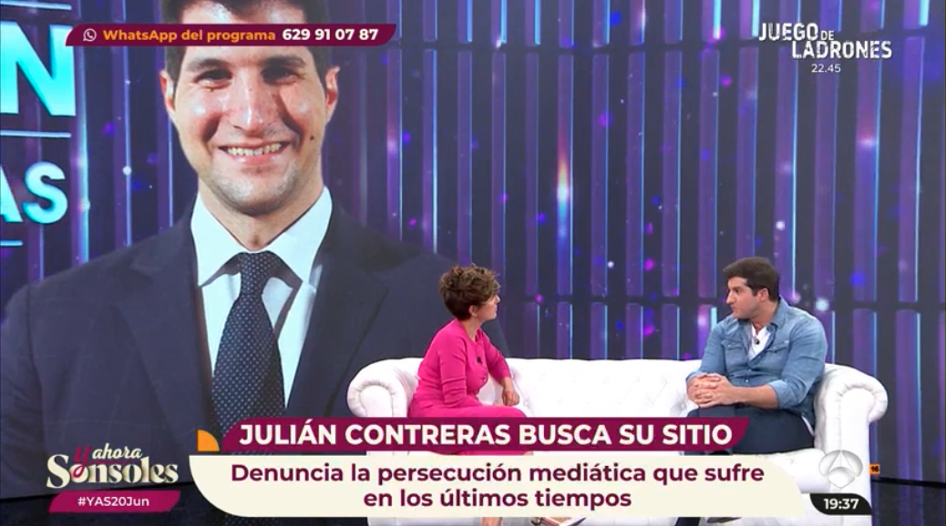 Para aliviar la tensión del momento, Sonsoles decidió interrumpir la entrevista y proyectar un vídeo: «Vamos a ver unas imágenes de Julián Contreras, de tu padre, que sustituyó a Paquirri en el corazón de Carmina Ordóñez, así este chico, joven y bueno, coge un poco de aire». El vídeo mostraba a su padre en unas declaraciones de 2017, su última aparición pública. Ónega destacó este hecho: «Esa es la última vez que vimos a tu padre, tú ahora lo estás cuidando».