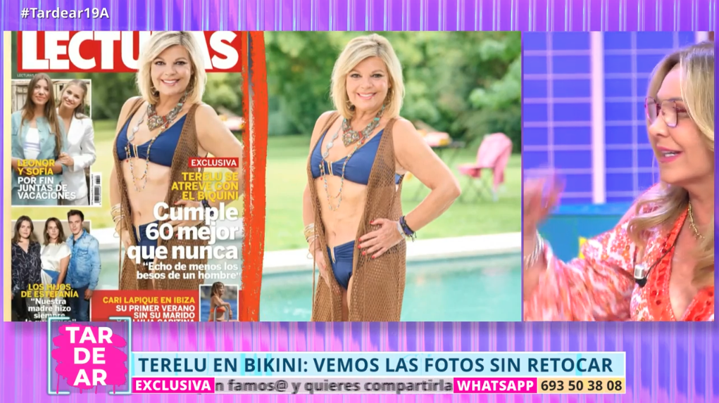 Este martes 19 de agosto, el director de Lecturas, Luis Pliego, acudió a TardeAR con las imágenes sin ningún tipo de edición para acabar con la controversia. En el plató se mostraron las fotografías tal y como fueron tomadas, sin filtros ni retoques digitales, dejando ver a Terelu de forma completamente natural.