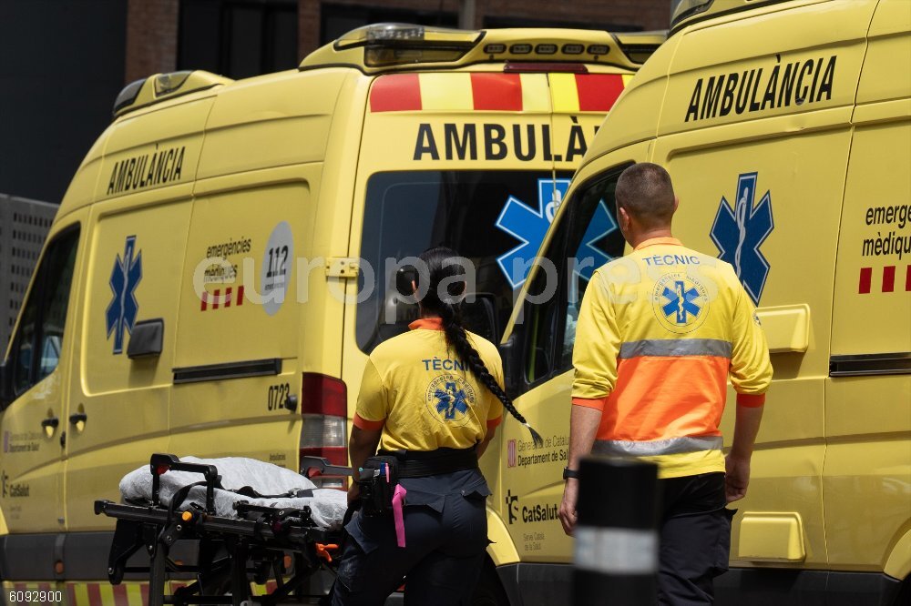 Unos sanitarios trabajan en una ambulancia, a 16 de julio de 2024, en Barcelona, Catalunya (España).